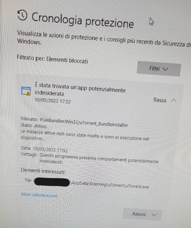 Bene, secondo Windows Defender uTorrent è un PUA