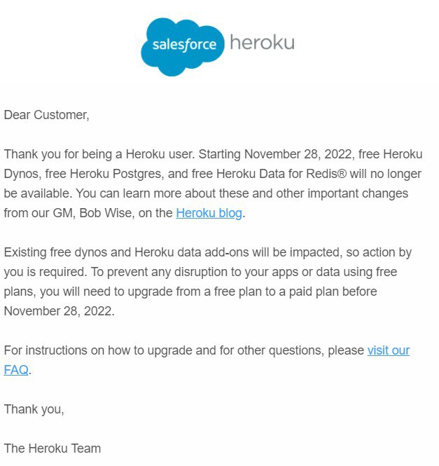 Porca puttana. Heroku free is over.