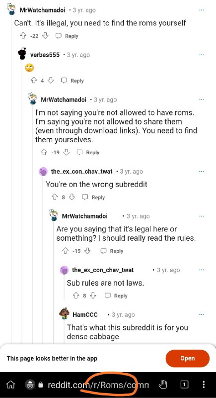 Redditor incorre nella fallacia dell'appello alla legge, ma non si accorge che sta scrivendo su r/Roms. https://teddit.net/r/Roms/comments/hp5g60/does_anyone_have_gba_video_roms/