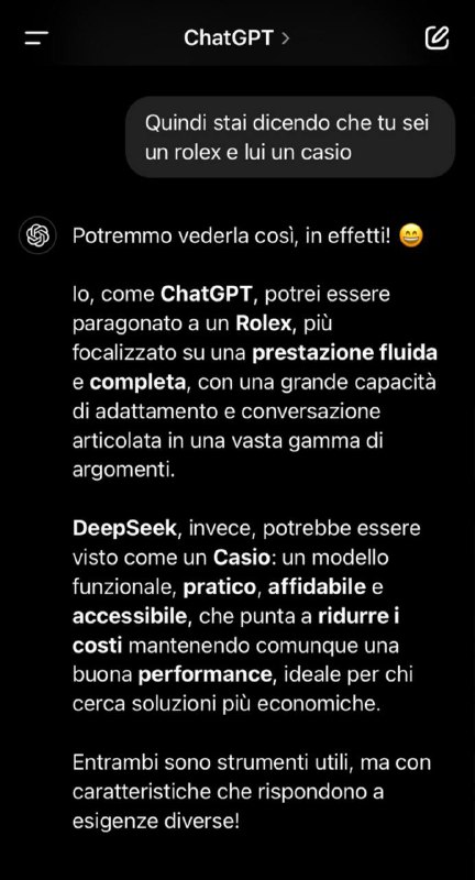 Ho chiesto a chatgpt cosa ne pensa di deepseek e siamo giunti a questa conclusione